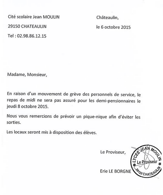 Pas de cantine pour les demi-pensionnaires le 8 octobre : mouvement de grève 5 octobre 2015 par Jean Moulin Chateaulin, publié dans ancienne actualité J’aime chargement… Similaire