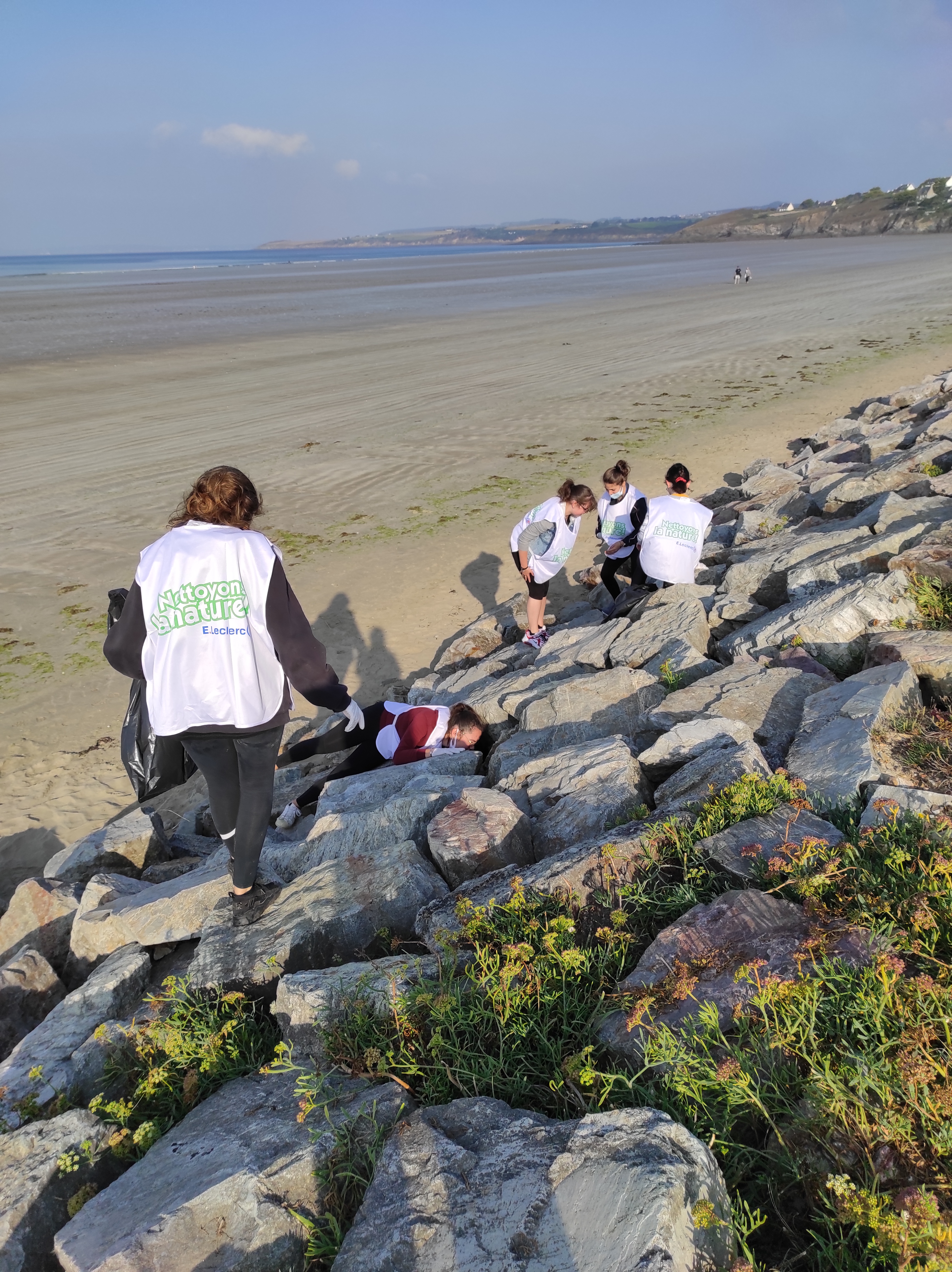 Les élèves de Secondes profitent de la journée d’intégration organisée à la plage de Pentrez sous un soleil magnifique pour nettoyer la plage de ces déchets, souvent coincés dans les enrochements. Les déchets rapportés au lycée seront ensuite pesés puis triés afin d’améliorer la connaissance sur la pollution par les micro et macro plastiques sur la Baie de Douarnenez mais également mettre en œuvre des actions de prévention, et de réduction de la pollution plastique.