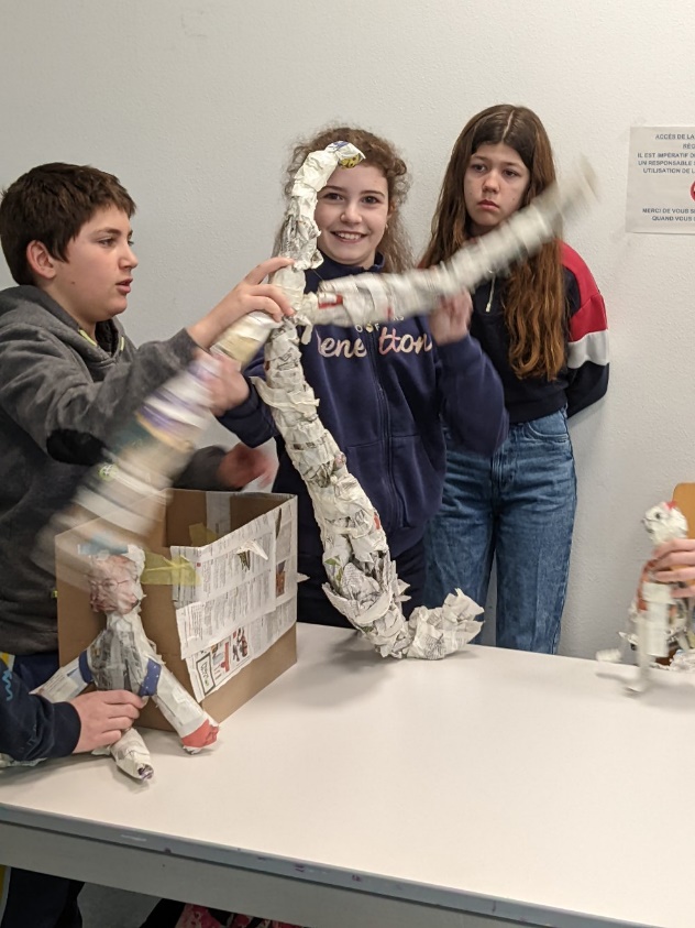 Aidés par Sabine Mittelhammer et encadrés par leurs enseignants, ils ont fabriqué leurs marionnettes et leurs décors avec du papier journal, ont imaginé et travaillé la mise en scène, et appris à manipuler des marionnettes.