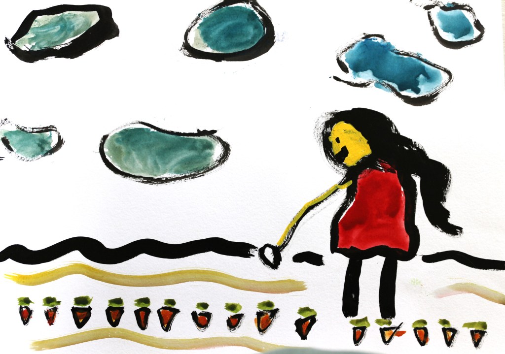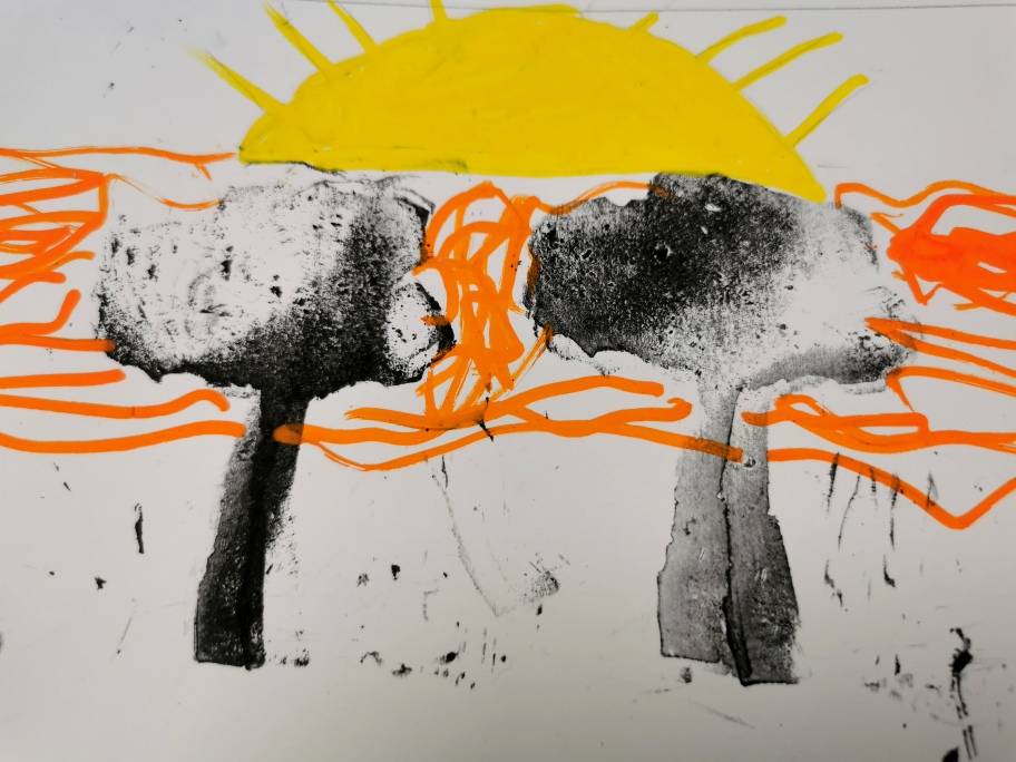 L’intervention à hauteur de 9 heures de Yann Le Bras aura été riche en apprentissages et expériences : initiation aux techniques du monotype, du cyanotype et de l’encre de chine, forte rencontre humaine, collaboration, diversité, multiples degrés d’adaptation (du texte à l’image en différentes étapes, puis de l’image à l’oral).