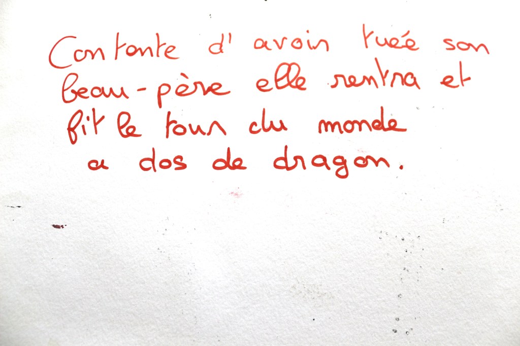 Un travail interdisciplinaire aura été mené, mêlant travail d’écriture de contes en cours de Français, adaptation des textes sous forme d’illustrations convoquant diverses techniques de représentation en arts plastiques et mise en scène collective de « lectures » des productions en option théâtre (actuellement en construction avec les élèves).