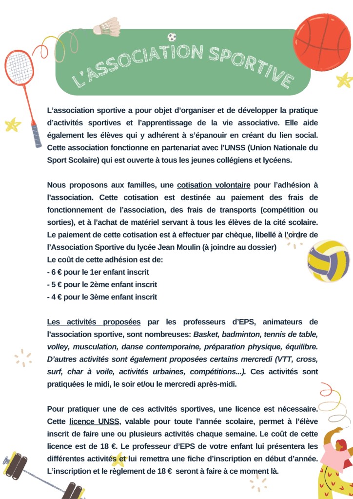ADHESION A L’ASSOCIATION SPORTIVE POUR LES LYCEENS COMME LES COLLEGIENS